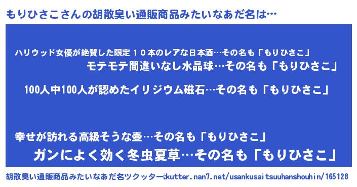 | ヘコむあだ名 | 『もりふぇ~』『牛乳』『もりっぺ』 |