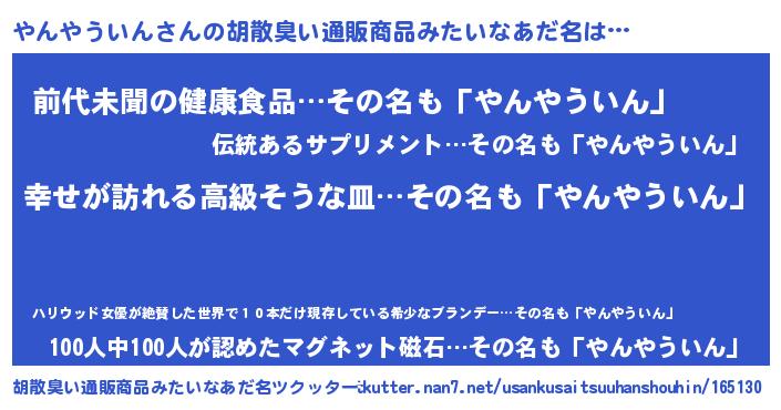 | 男性向けラノベタイトル風あだ名 | 『やはりやんやういんの青春ラブコメはまちがっている 』 |