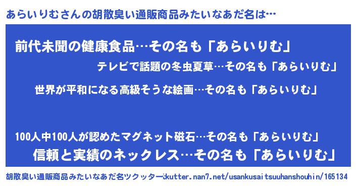 | 意味不明あだ名 | 『あらいりむフォーエバー』 |