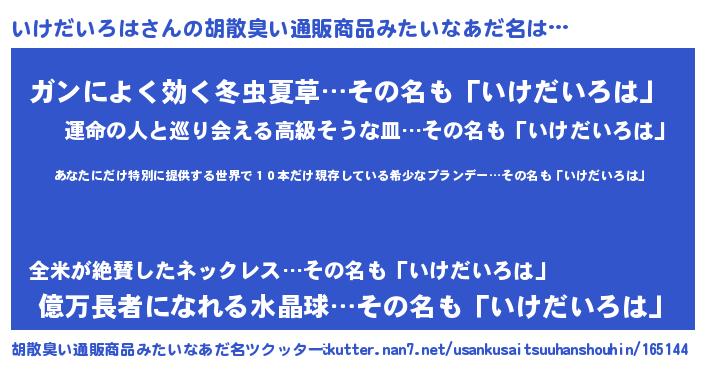 | 伝説のあだ名 | 『封印されしスナイパーいけだいろは』 |