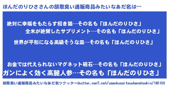 | 欧米人風あだ名 | 『トリンドルほんだのりひさ』 |