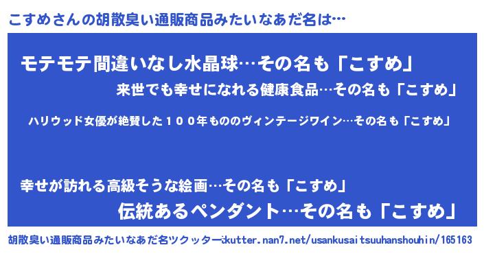 | 恥ずかしいあだ名 | 『プリティーこすめ』『コスリンリン』 |