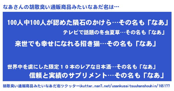 | ヘコむあだ名 | 『なあ(小並感)』『なあっちょ』 |