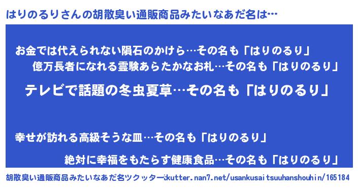 | ヘコむあだ名 | 『はりのるり(遠い目)』『はりにゅー』 |