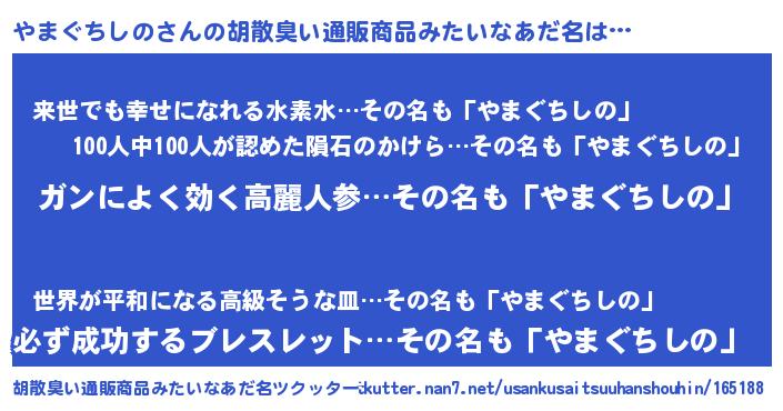 | ヘコむあだ名 | 『やまぐちしの(笑)』『やまもー』 |