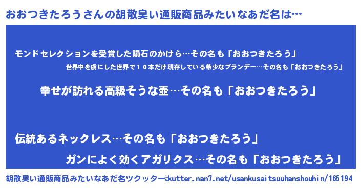 | 欧米人風あだ名 | 『アンジェラ・おおつきたろう』 |