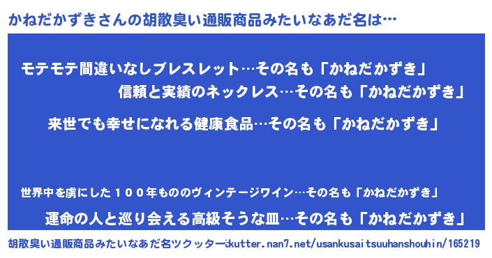 | 恥ずかしいあだ名 | 『かねちん』『プリティーかねだかずき』 |