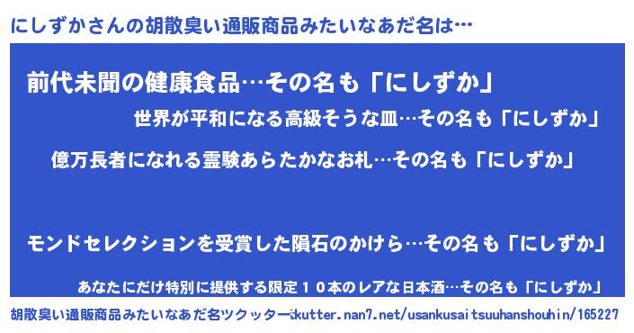 | ヘコむあだ名 | 『にしもー』『にしずか(爆)』 |
