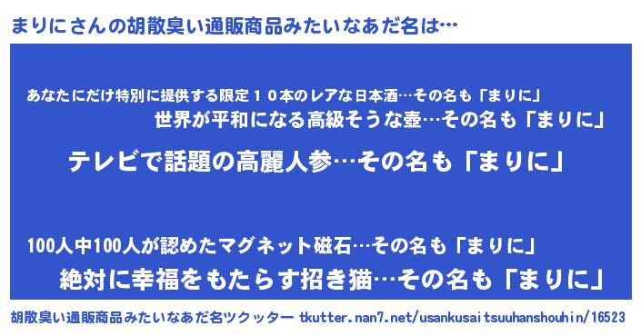 | 意味不明あだ名 | 『自称まりに』『エリンギ科まりに属』 |