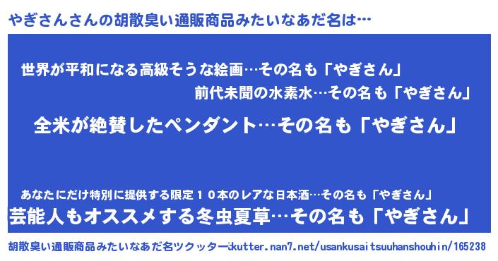 | ポケモン風あだ名 | 『ヒヤギサン』『ヤギキング』 |
