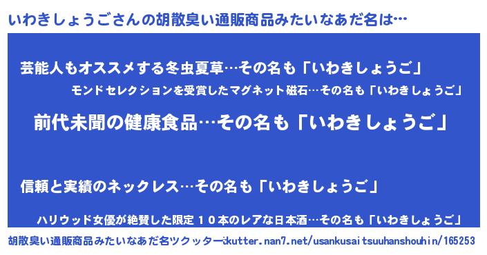 | 意味不明あだ名 | 『永久保存いわきしょうご』 |