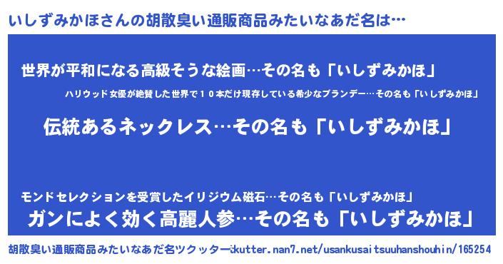 | 意味不明あだ名 | 『とにかく怪しいいしずみかほ』 |