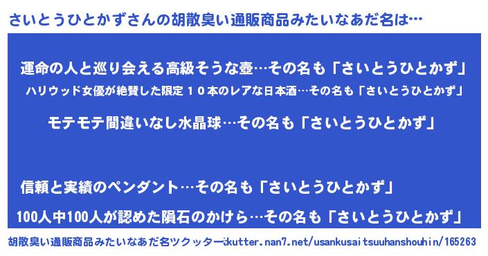 | 意味不明あだ名 | 『ペロリンさいとうひとかず』 |