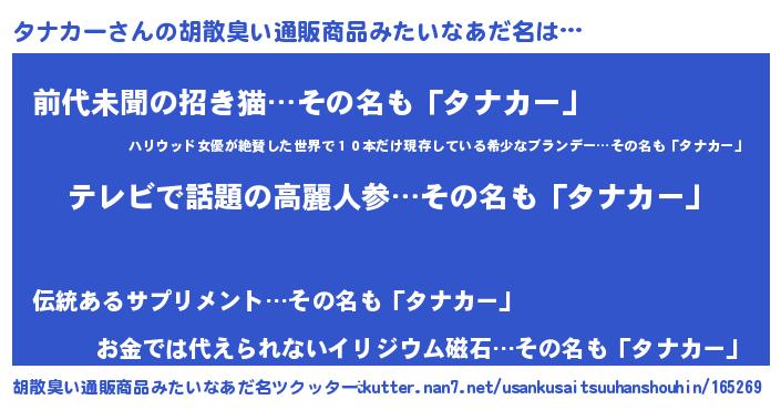 | 意味不明あだ名 | 『自称タナカー』『永久保存タナカー』 |