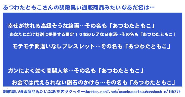 | 肩書あだ名 | 『あつわたともこ大佐』 |