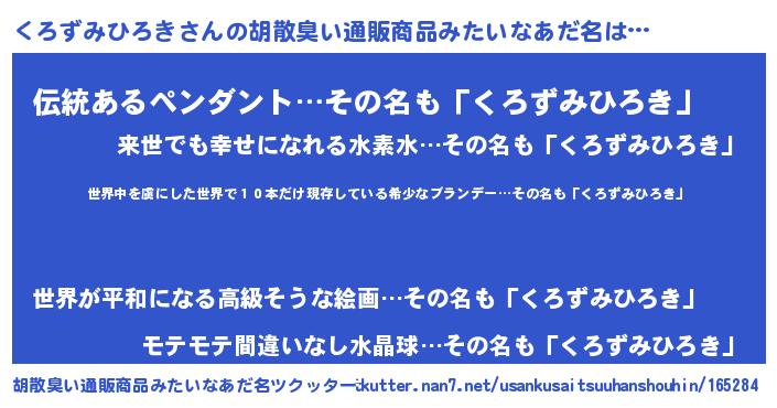 | 意味不明あだ名 | 『住所不定無職くろずみひろき(81歳)』 |