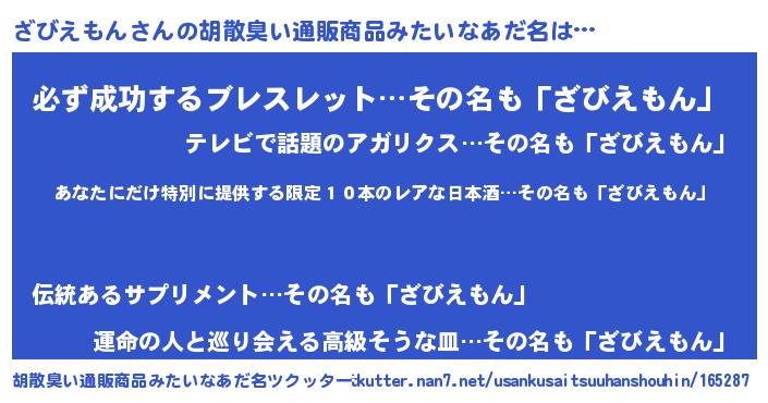 | 意味不明あだ名 | 『住所不定無職ざびえもん(53歳)』 |