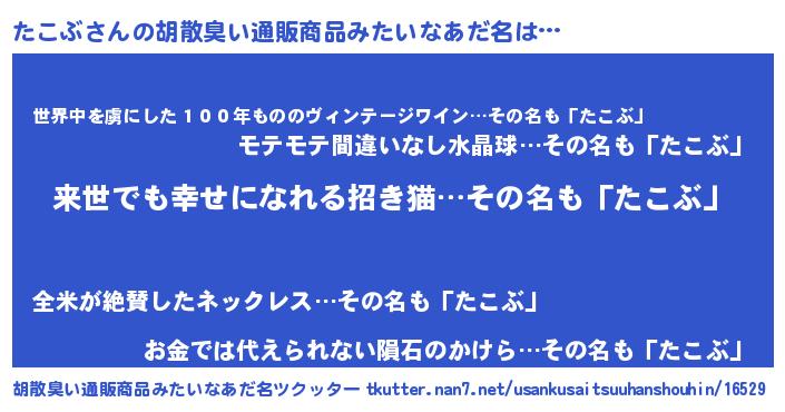 | ヘコむあだ名 | 『たこぶ(笑)』『たこにゅー』 |