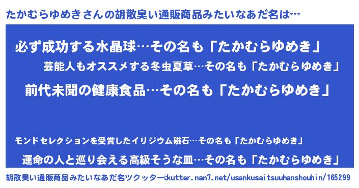 | 恥ずかしいあだ名 | 『たかちん』『プリティーたかむらゆめき』 |