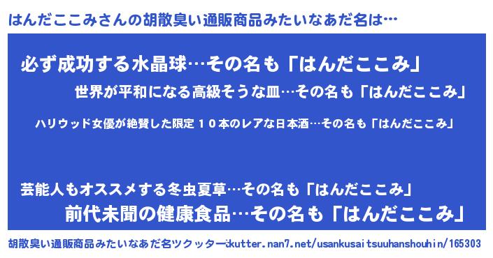 | 意味不明あだ名 | 『住所不定無職はんだここみ(65歳)』 |