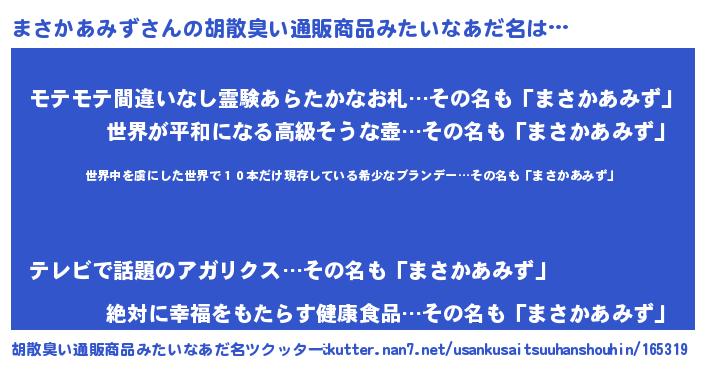 | 意味不明あだ名 | 『住所不定無職まさかあみず(79歳)』 |