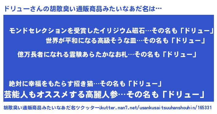 | ヒーロー風カッコイイあだ名 | 『スーパードリュー』『究極戦士ドリュー』 |