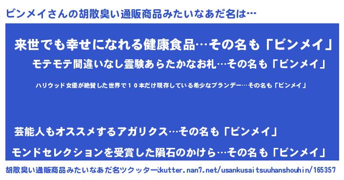 | ヘコむあだ名 | 『ビンメイ(遠い目)』『ビンにゅー』 |