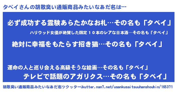 | ヘコむあだ名 | 『タベイ(笑)』『タベっふぃ~』 |