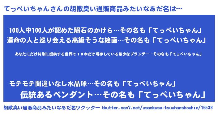 | 意味不明あだ名 | 『住所不定無職てっぺいちゃん(93歳)』 |