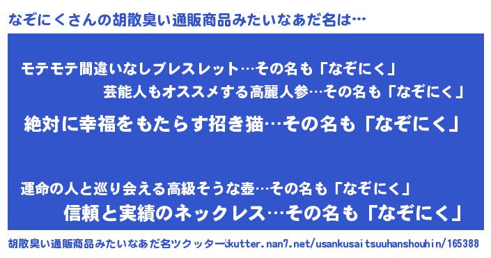 | ヘコむあだ名 | 『なぞにく(笑)』『なぞっふぃ~』 |
