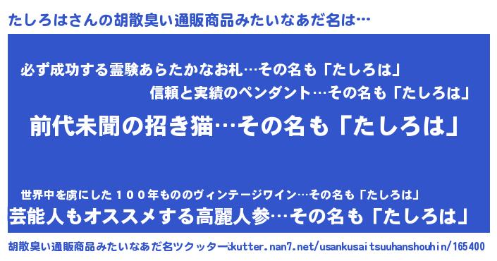 | ヘコむあだ名 | 『たしろは(笑)』『たしにー』 |