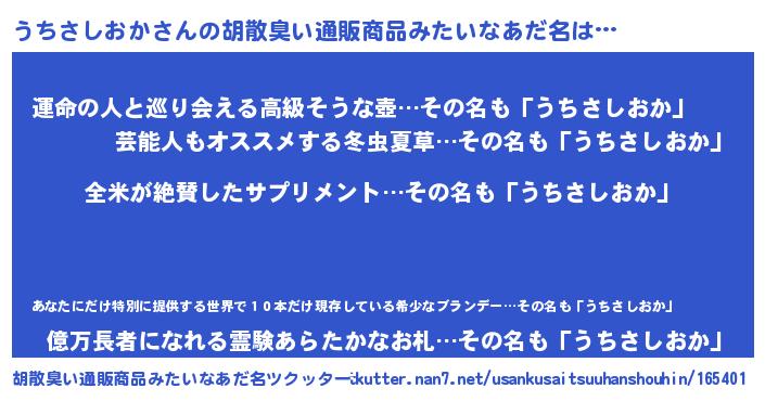 | 意味不明あだ名 | 『とにかく怪しいうちさしおか』 |