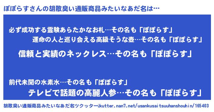 | 意味不明あだ名 | 『とにかく怪しいぽぽらす』 |
