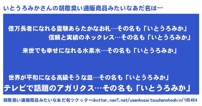 | 意味不明あだ名 | 『永久保存いとうろみか』 |