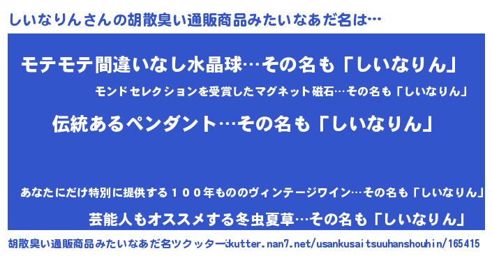| 意味不明あだ名 | 『とにかく怪しいしいなりん』 |