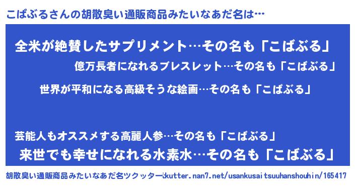 | ヘコむあだ名 | 『なまこ酢』『こばお』『こばにー』 |