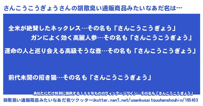 | 意味不明あだ名 | 『さんこうこうぎょうフォーエバー』 |