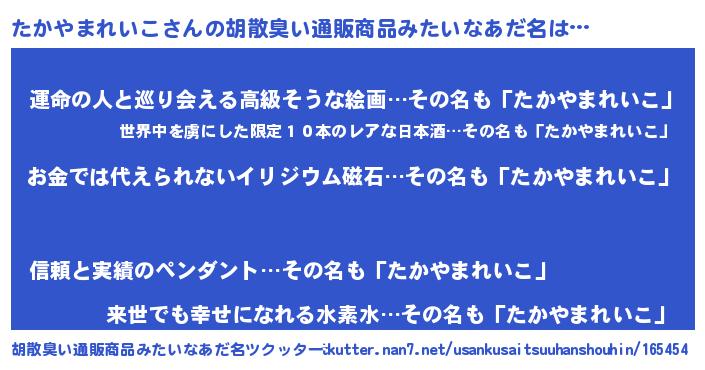 | 伝説のあだ名 | 『魔王と互角に渡り合う占い師たかやまれいこ』 |