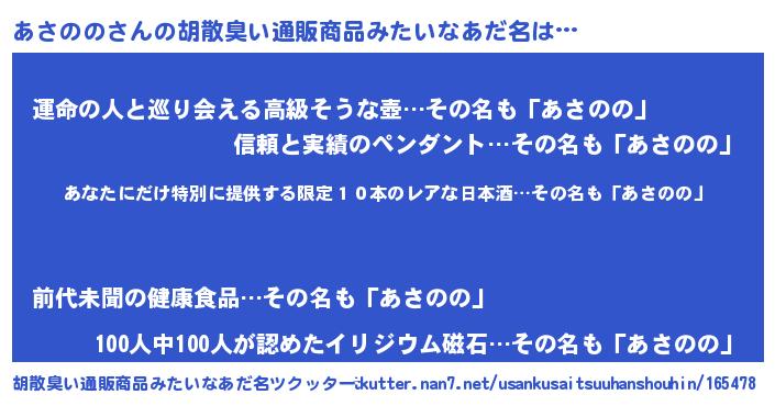 | 意味不明あだ名 | 『住所不定無職あさのの(41歳)』 |