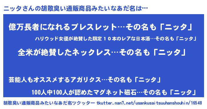 意味不明あだ名 | 『ヨモギ科ニッタ属』『ペロリンニッタ』 |