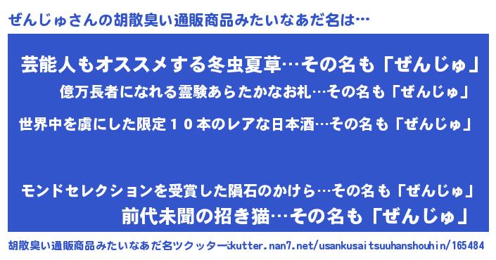 | 意味不明あだ名 | 『住所不定無職ぜんじゅ(40歳)』 |