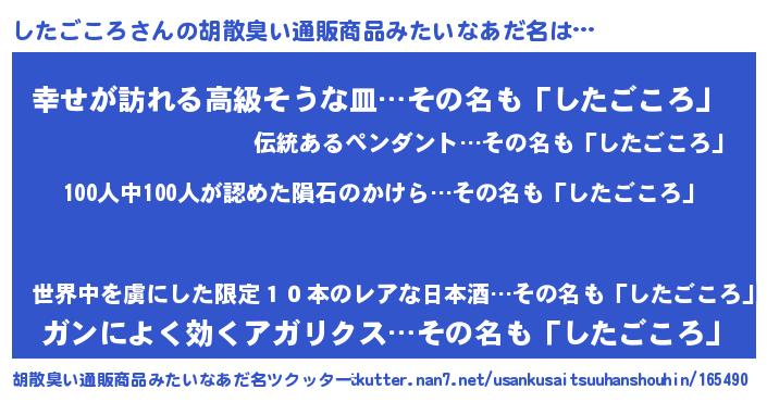 したごころさんの胡散臭い通販商品みたいなあだ名をツクッター!