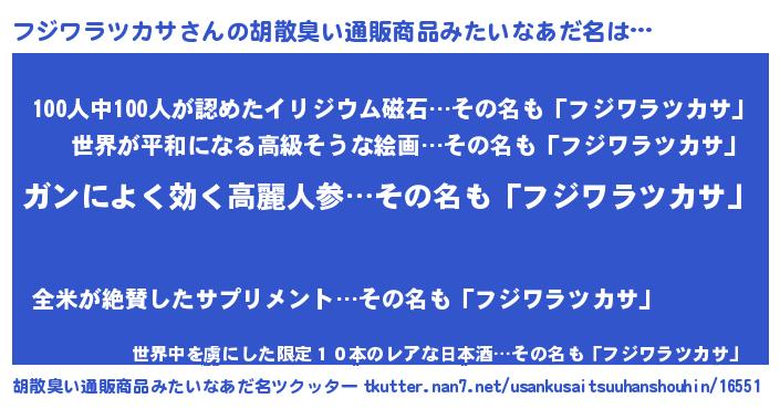 | 意味不明あだ名 | 『自称フジワラツカサ』 |