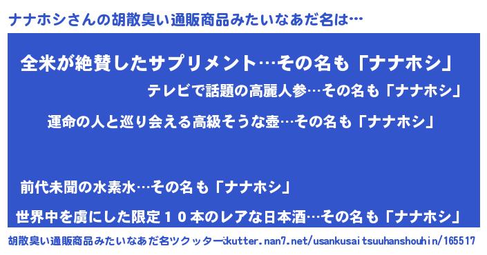 | 意味不明あだ名 | 『ナナホシフォーエバー』『自称ナナホシ』 |