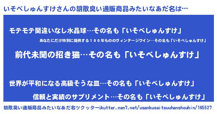 | 意味不明あだ名 | 『永久保存いそべしゅんすけ』 |