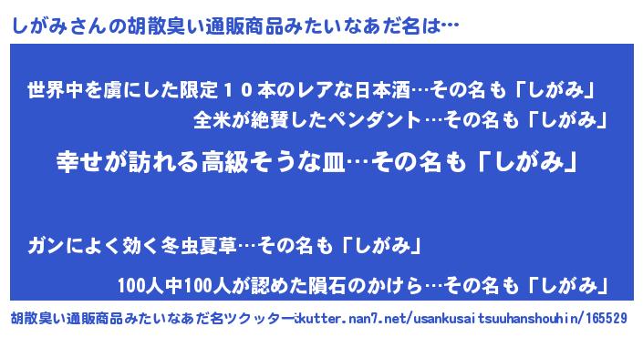 | 恥ずかしいあだ名 | 『しがっちょ』『ボンバーヘッドしが』 |