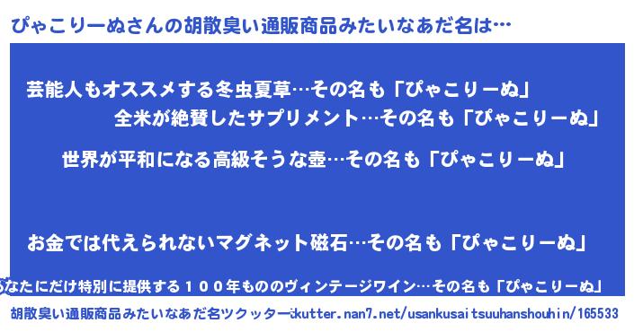 | 肩書あだ名 | 『ぴゃこりーぬ大統領』 |