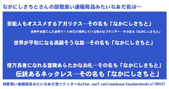 | 肩書あだ名 | 『なかにしさちと国家主席』 |