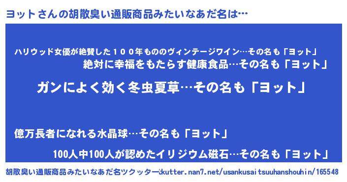 | ヘコむあだ名 | 『ヨット(震え声)』『ヨッふぇ~』 |
