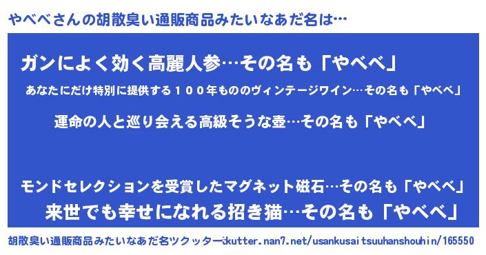 | 意味不明あだ名 | 『やべべフォーエバー』『自称やべべ』 |